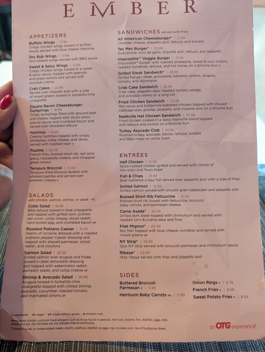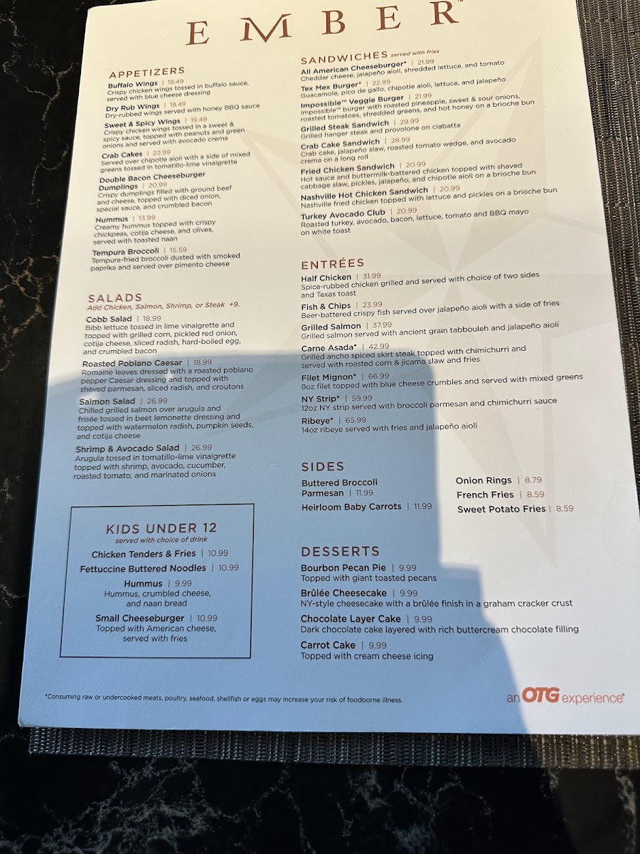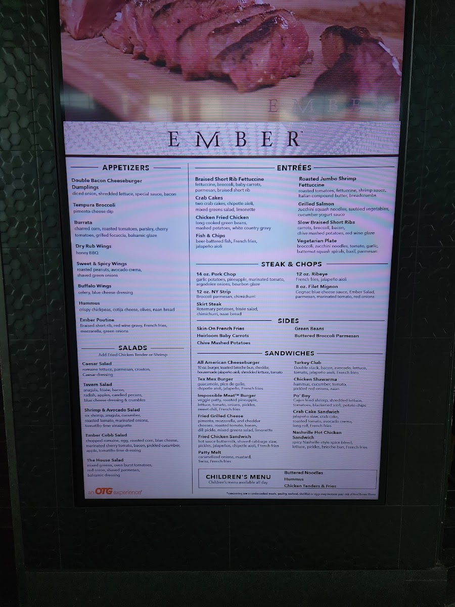 - Appetizers to Savor: The Ember Tempura Broccoli, golden and crispy, served with rich pimento cheese elevates your snacking experience.